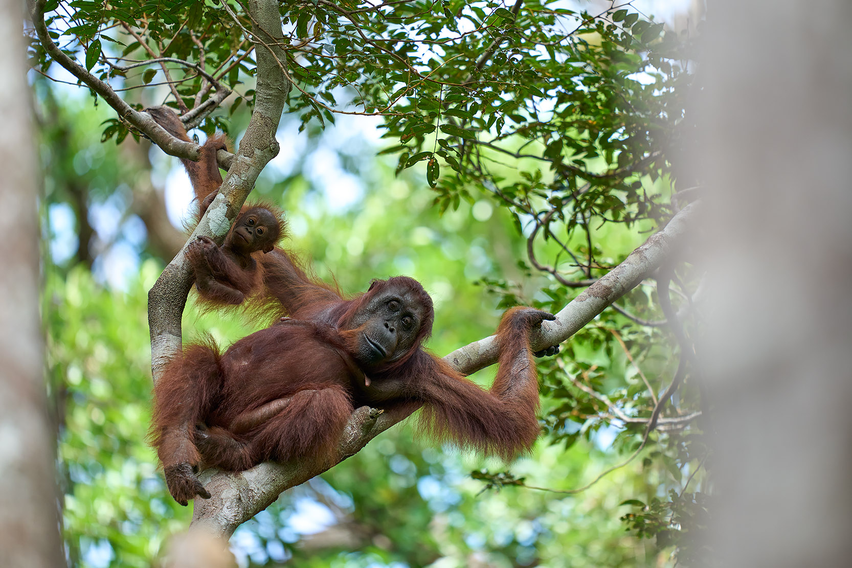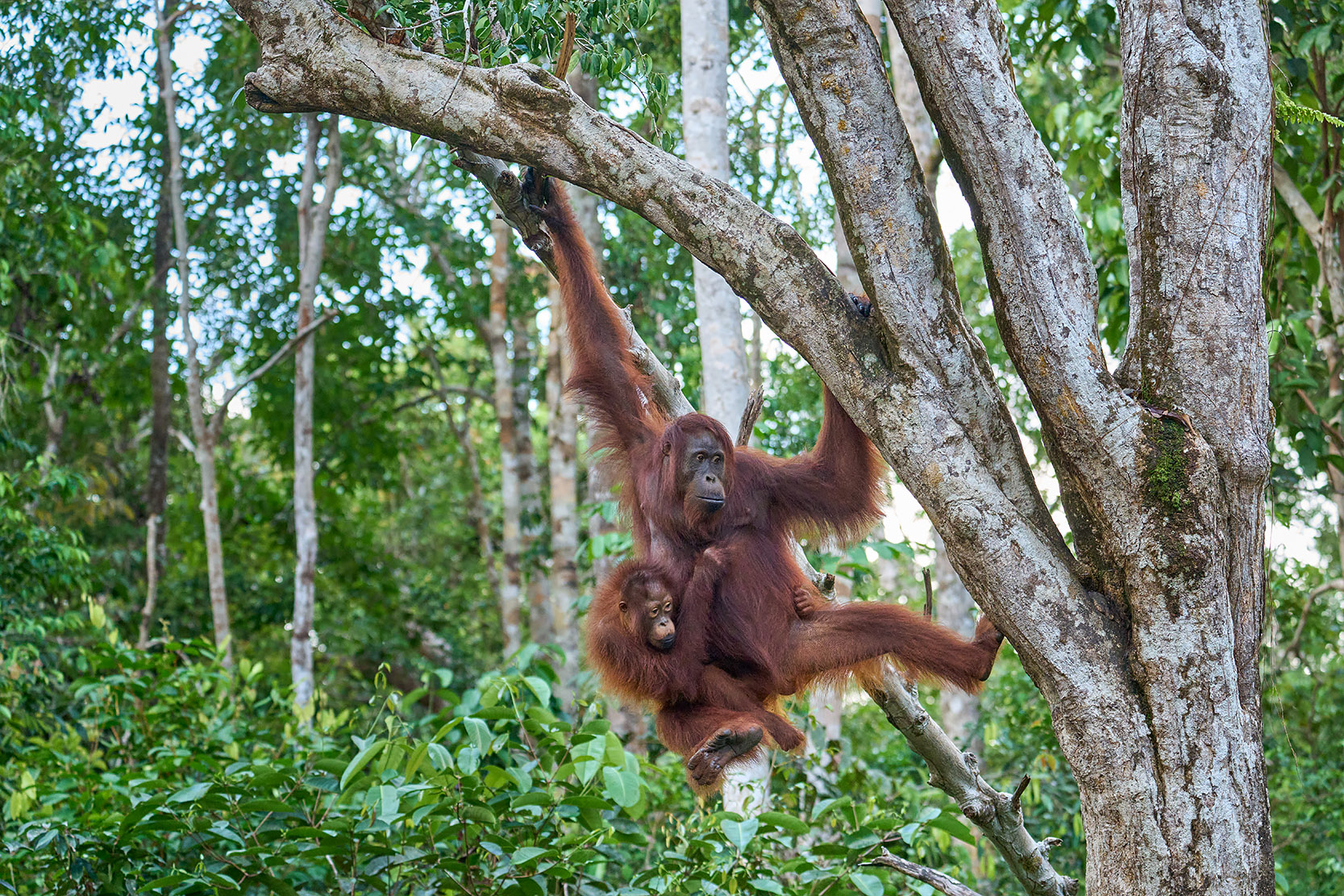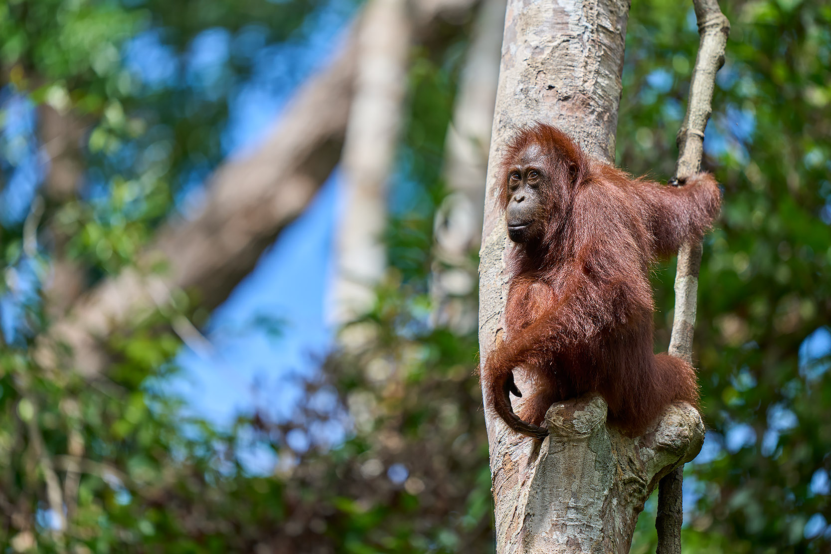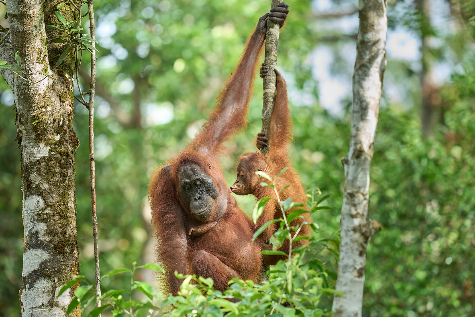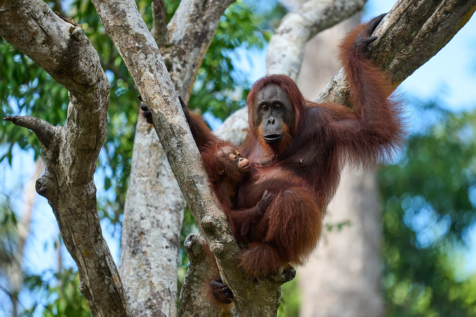 Orangutani na ostrově Borneo patří k nejohroženějším primátům na světě a jsou symbolem tamní divoké přírody. Tito mimořádně inteligentní tvorové tráví většinu života vysoko v korunách stromů, kde si staví každodenní hnízda ke spánku. Vynikají silnými pažemi a jemnou motorikou, díky níž se lehce pohybují mezi větvemi. Jejich strava se skládá hlavně z plodů, listů a dalších darů tropického pralesa. Samice vychovávají mláďata mnoho let, což z orangutanů dělá jedny z nejpečlivějších rodičů v živočišné říši. Kvůli úbytku pralesa a nelegálnímu lovu však jejich počet rychle klesá. Na Borneu tak probíhá řada projektů, které se snaží orangutany chránit a vracet je zpět do bezpečných oblastí. Setkání s orangutanem v divočině je nezapomenutelným zážitkem, který v lidem často probouzí větší úctu k přírodě. Tito laskaví obři nám připomínají, jak důležité je chránit poslední zbytky tropických pralesů.