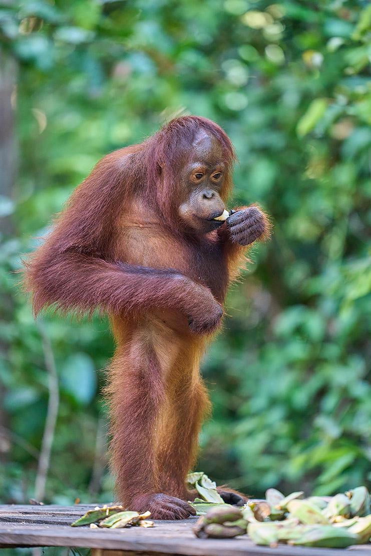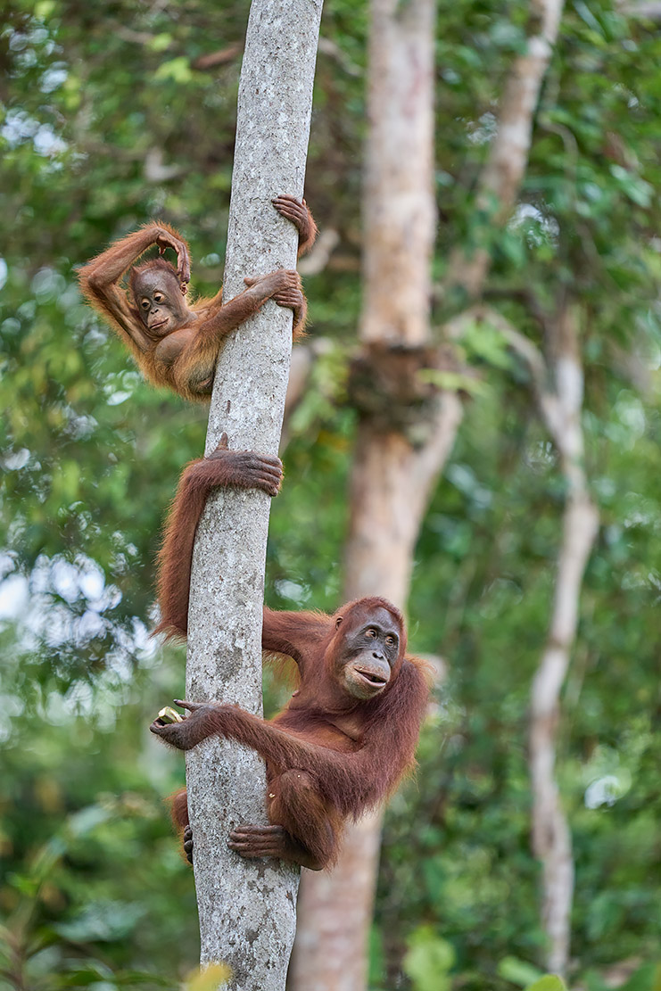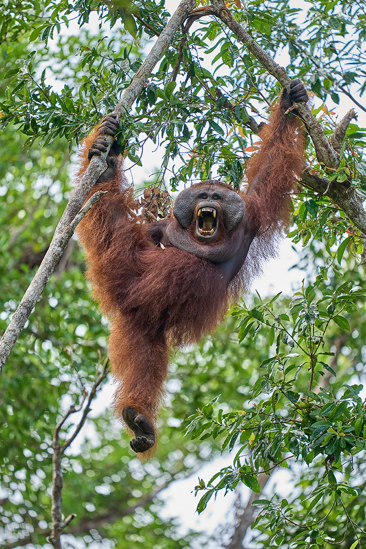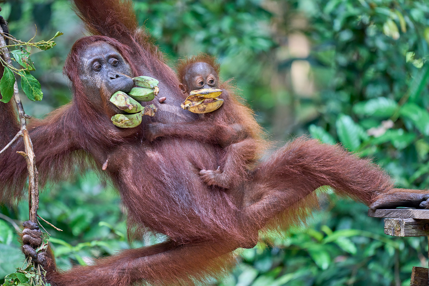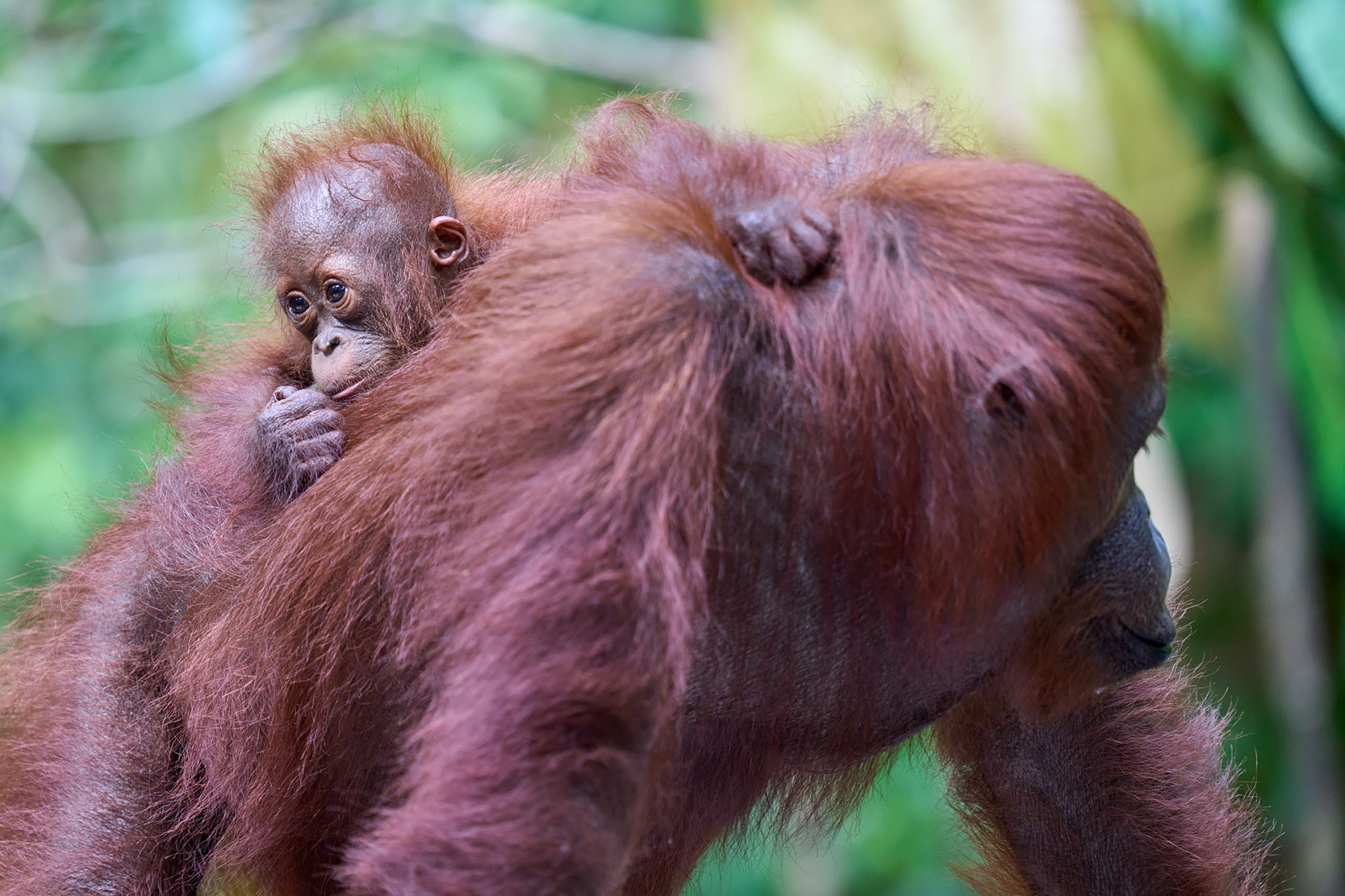 Orangutani na ostrově Borneo patří k nejohroženějším primátům na světě a jsou symbolem tamní divoké přírody. Tito mimořádně inteligentní tvorové tráví většinu života vysoko v korunách stromů, kde si staví každodenní hnízda ke spánku. Vynikají silnými pažemi a jemnou motorikou, díky níž se lehce pohybují mezi větvemi. Jejich strava se skládá hlavně z plodů, listů a dalších darů tropického pralesa. Samice vychovávají mláďata mnoho let, což z orangutanů dělá jedny z nejpečlivějších rodičů v živočišné říši. Kvůli úbytku pralesa a nelegálnímu lovu však jejich počet rychle klesá. Na Borneu tak probíhá řada projektů, které se snaží orangutany chránit a vracet je zpět do bezpečných oblastí. Setkání s orangutanem v divočině je nezapomenutelným zážitkem, který v lidem často probouzí větší úctu k přírodě. Tito laskaví obři nám připomínají, jak důležité je chránit poslední zbytky tropických pralesů.